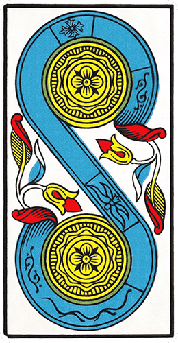Toutes ces significations se retrouvent dans le Deux de Deniers.